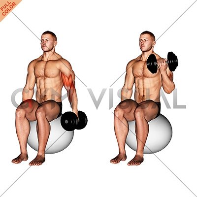 Dumbbell One Arm Seated Bicep Curl on Exercise Ball